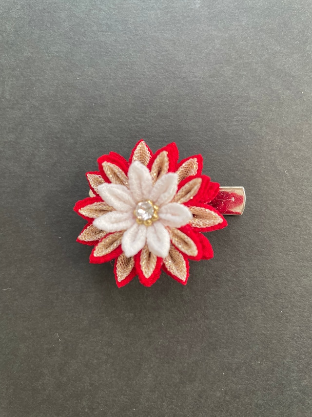 つまみ細工髪飾り こっくりとした赤が大人の女性におすすめです。 全体縦横約10cm メインのボルドーのお花直径約6.0cm クリップ仕上げ 一越ちりめん使用 (注意) 水濡れや長時間の圧迫は縮みや変形の原因になります。繊細な作品ですので無理に曲げたり引張ったりしない様お願い致します。 また、手作り品ですので多少の個体差があります。ご理解頂けると幸いです。